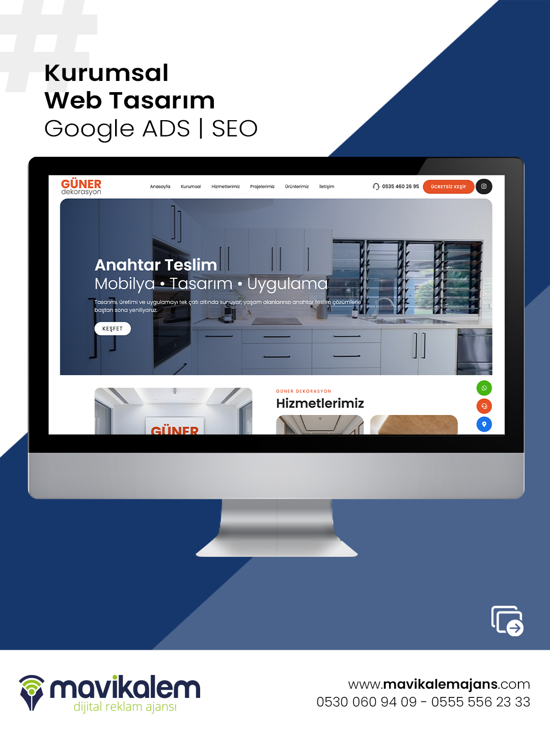 Web sitesi yapımı işi çok kısa sürede ve uygun maliyetlerle yapılabildiği gibi, uzun uğraşlar, uzun bir zaman ve yüksek maliyetlere de yapılabilir. Bu tamamen işletmenin bu işe verdiği değerle ilgilidir. Mavikalem Dijital Reklam Ajansı bu işi özgün bir tasarım, kaliteli bir kod yapısı ile oluşturur.